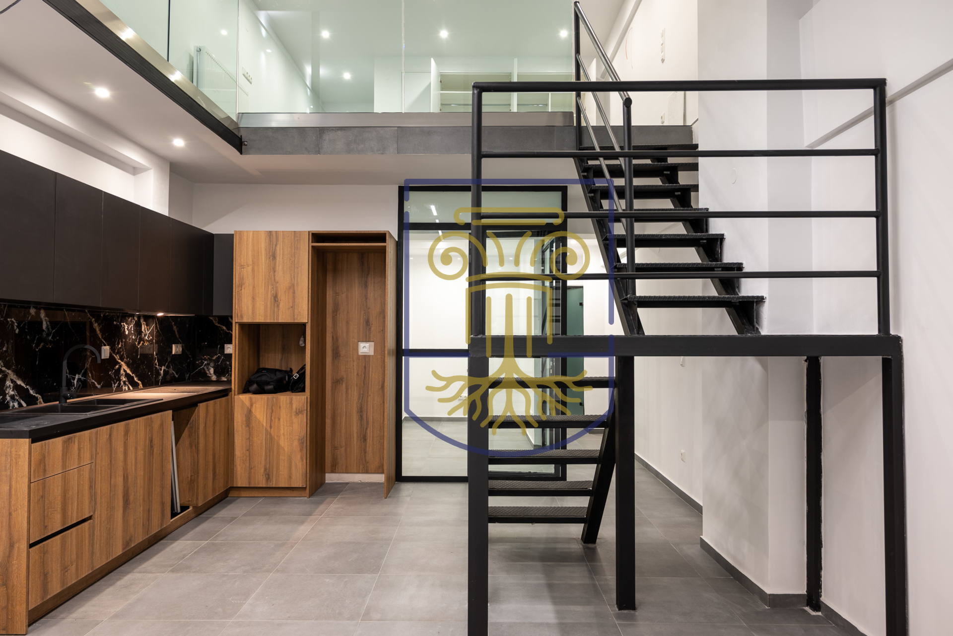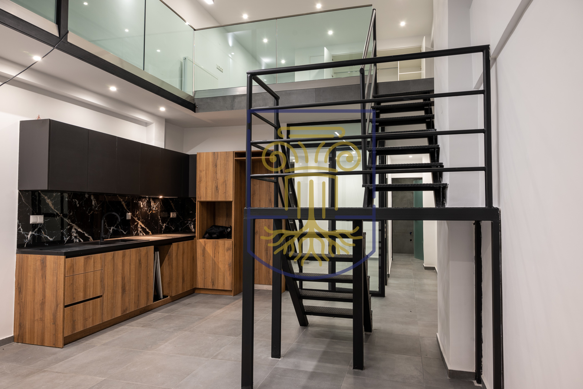 A fully renovated 98 sq.m. ground-floor loft apartment is for sale in the Ampelokipoi area of Thessaloniki, close to the City Hall. Spread across two levels, it combines modern aesthetics, high-quality materials and a distinctive architectural character, ideal for those seeking a unique and functional living space.