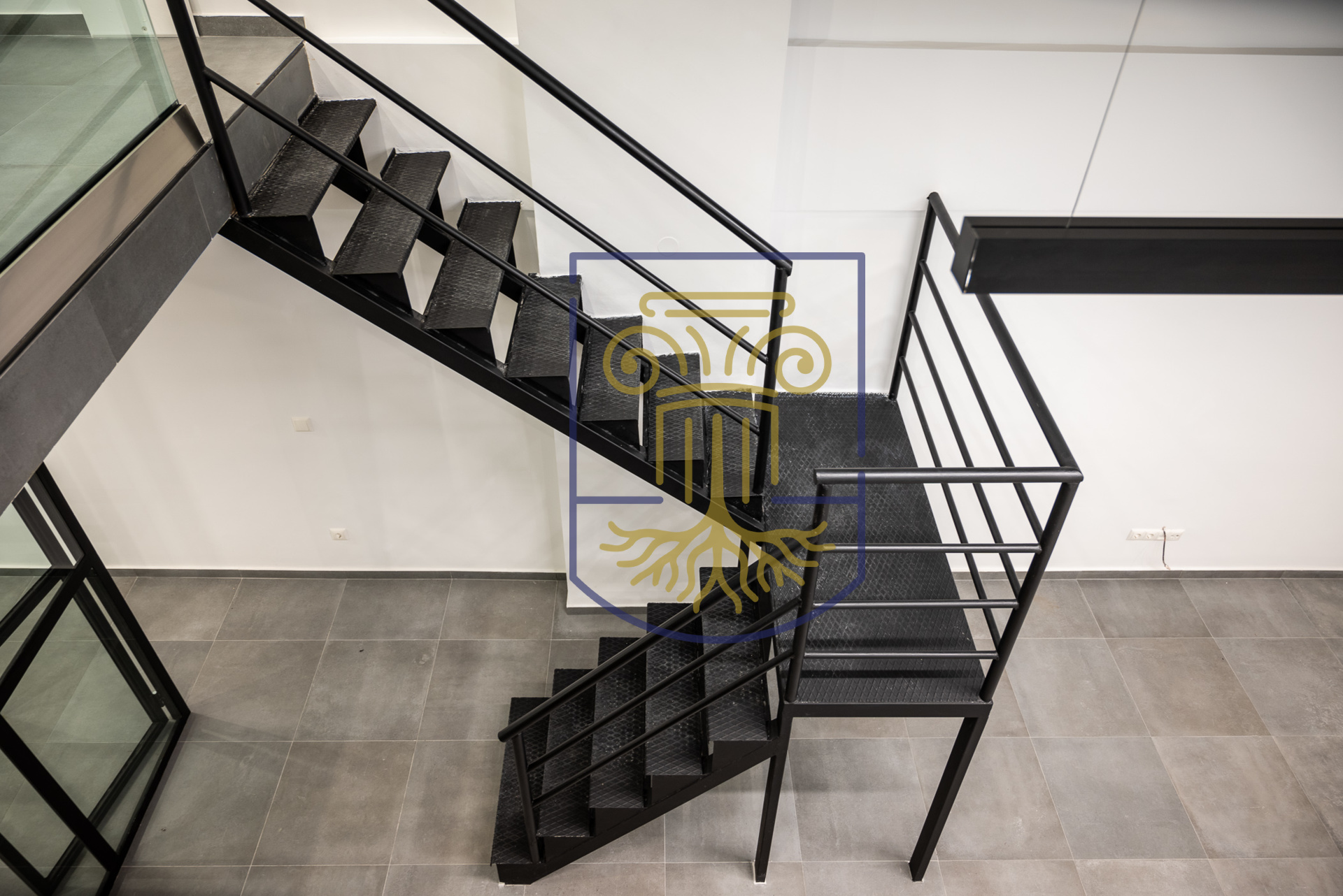 • Metal, industrial-style staircase